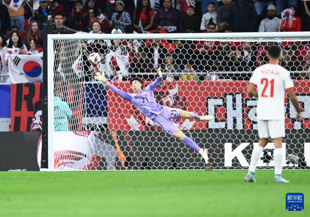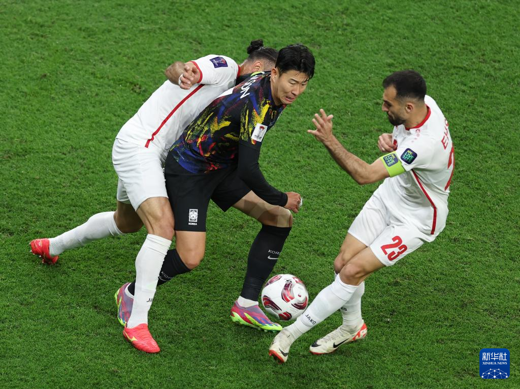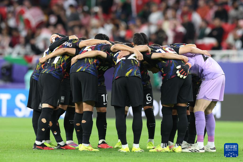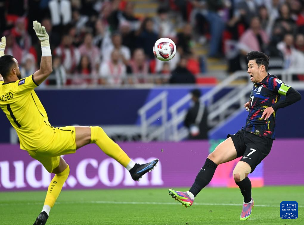 当日,在卡塔尔艾哈迈德·本·阿里体育场举行的男足亚洲杯半决赛中,约旦队对阵韩国队。