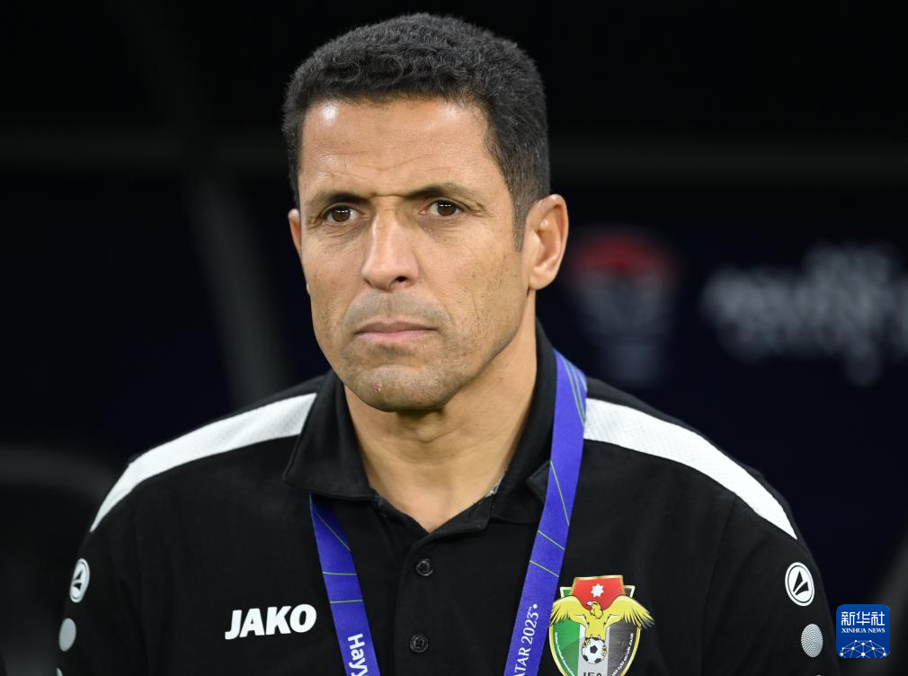 2月6日,约旦队主教练阿莫塔在比赛前。新华社记者 江汉 摄
