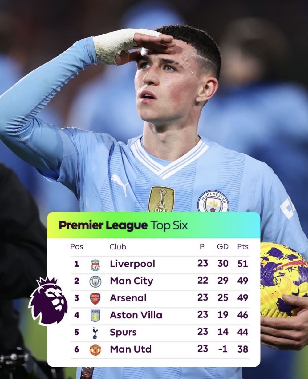 曼城赛后积分图。图片来自英超官方社交媒体账号