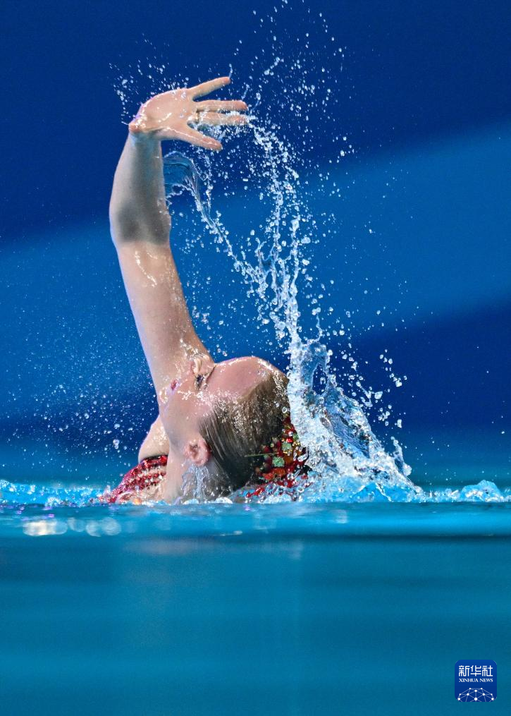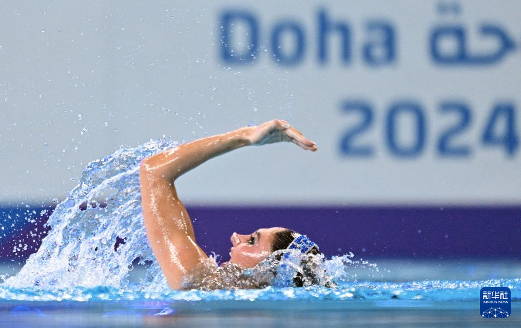 当日,2024年世界游泳锦标赛花样游泳女子单人自由自选决赛在卡塔尔多哈举行。