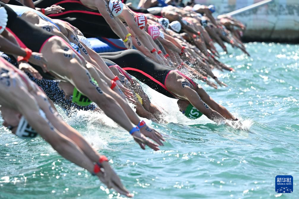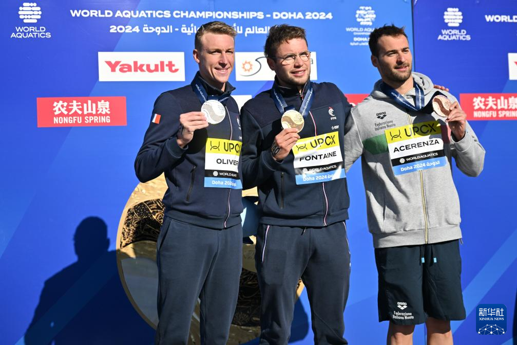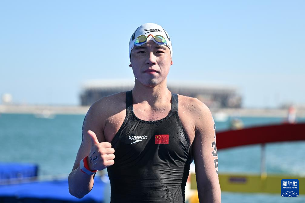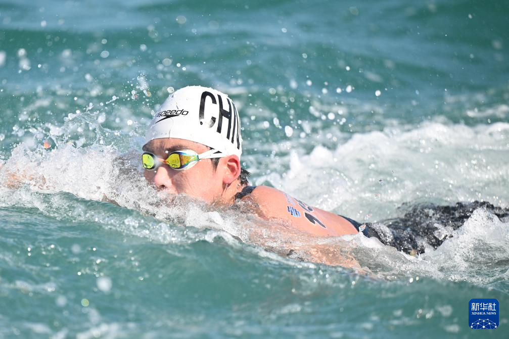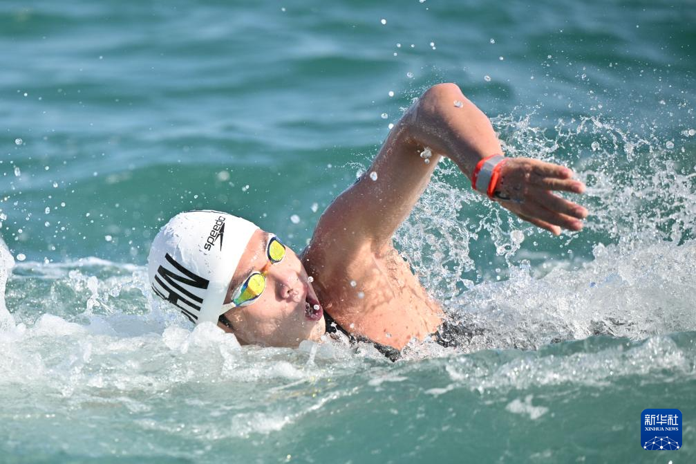 当日,2024年世界游泳锦标赛公开水域男子5公里决赛在卡塔尔多哈举行。
