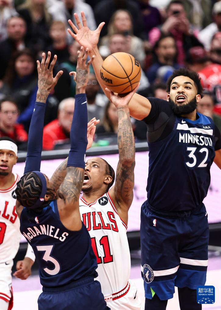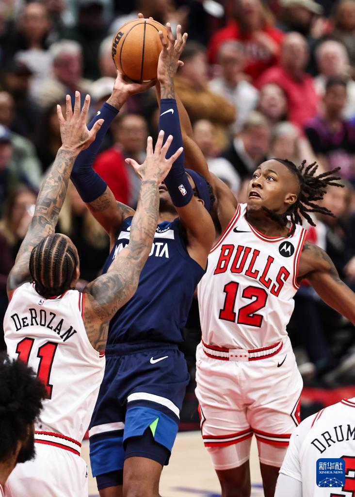 当日,在2023-2024赛季NBA常规赛中,芝加哥公牛队主场129比123战胜明尼苏达森林狼队。