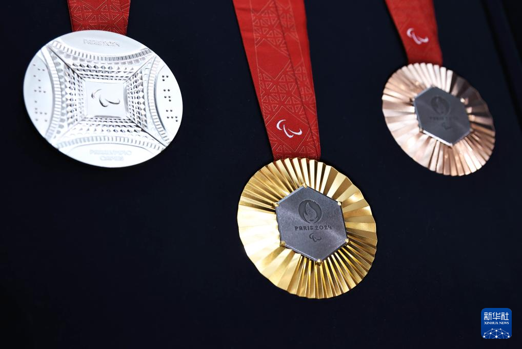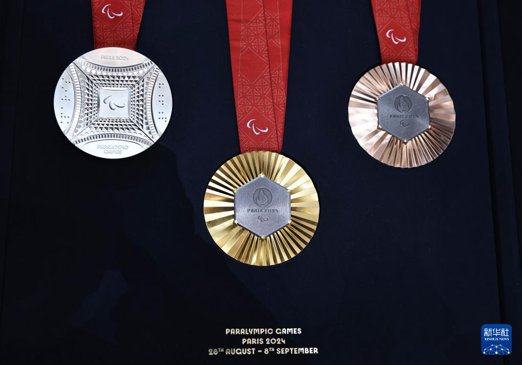 这是2月8日在发布现场拍摄的巴黎残奥会奖牌。新华社记者 高静 摄