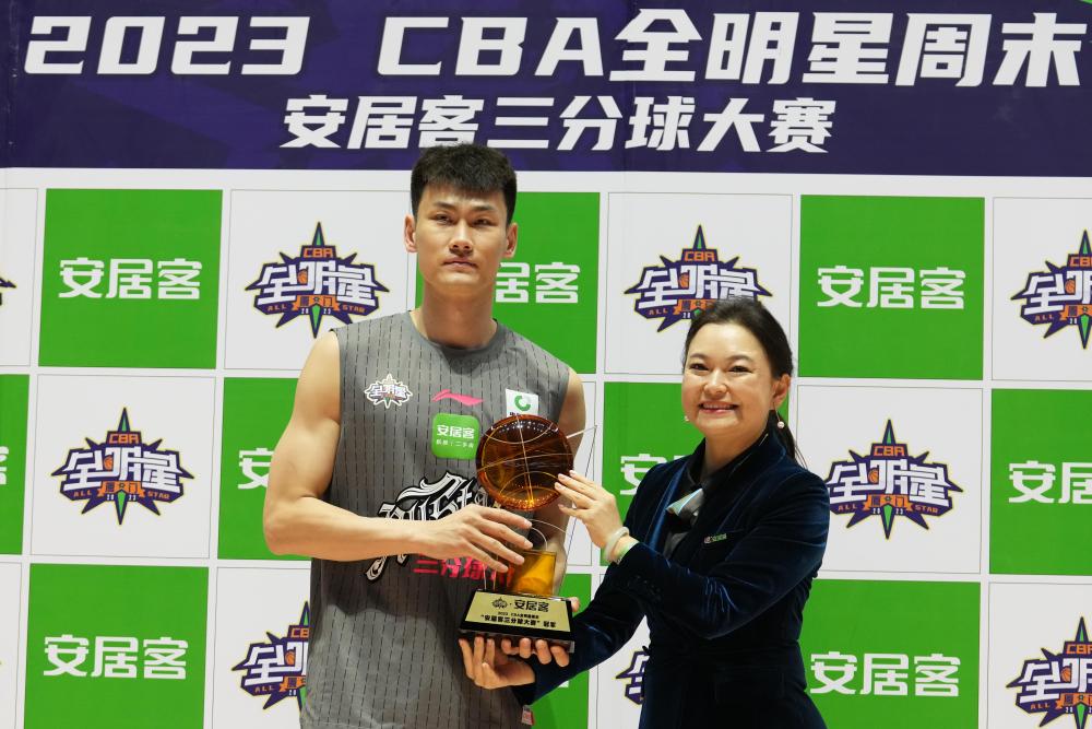 2023年3月26日,王睿泽(左)获得2023年CBA全明星周末三分球大赛冠军。新华社记者 孟永民 摄