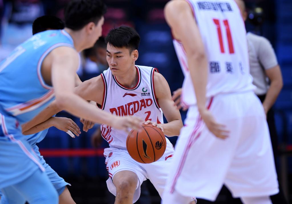 2020年6月27日,王睿泽(中)在2019-2020赛季中国男子篮球职业联赛(CBA)的比赛中带球突破。新华社记者 李紫恒 摄