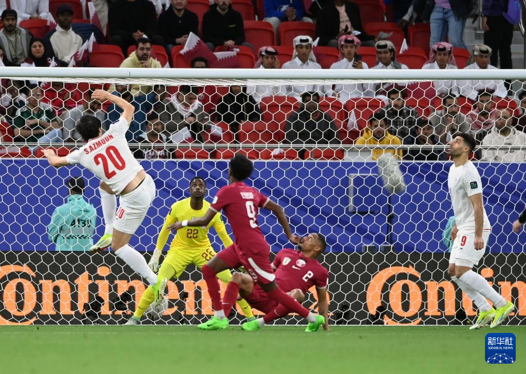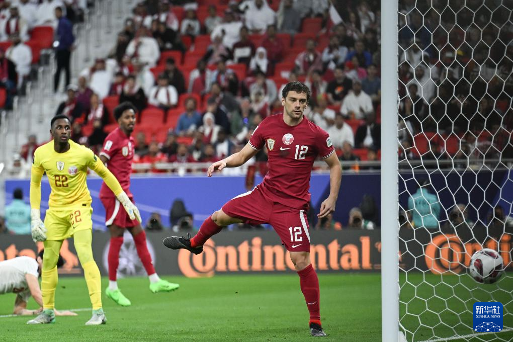 2月7日,卡塔尔队球员贾西姆·贾比尔·阿卜杜勒萨拉姆射门得分。新华社记者 江汉 摄