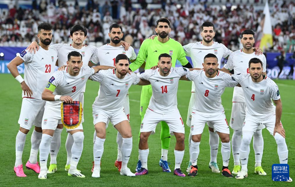 2月7日,伊朗队首发球员赛前合影。新华社记者 江汉 摄