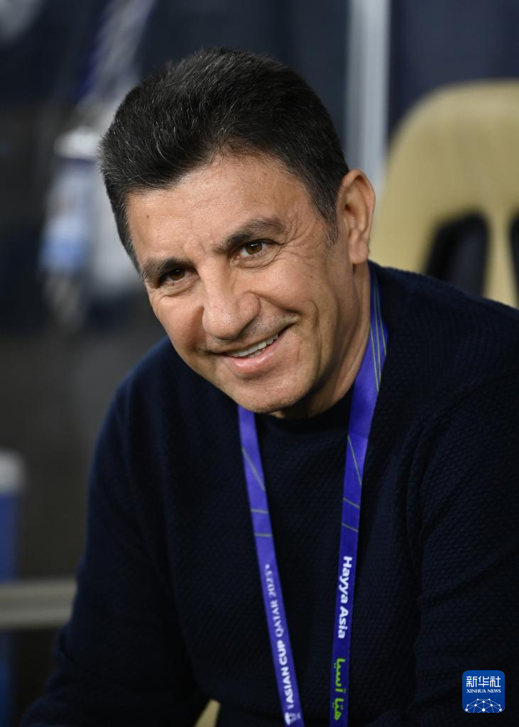 2月7日,伊朗队主教练阿尔德希尔·加勒诺伊在比赛前。新华社记者 江汉 摄