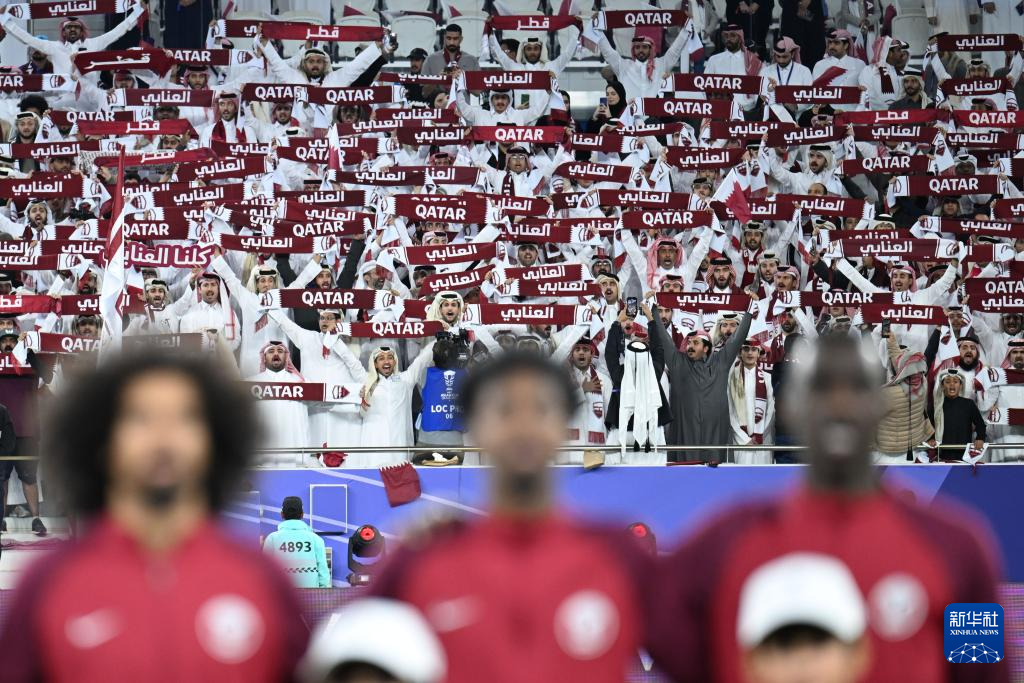 2月7日,卡塔尔队球迷为球队加油助威。新华社记者 江汉 摄