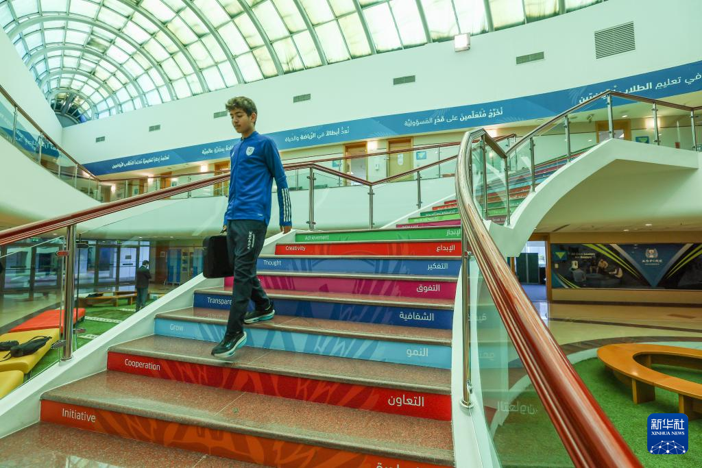 这是2月5日拍摄的卡塔尔阿斯拜尔体育学院内的学员。新华社记者 孙凡越 摄