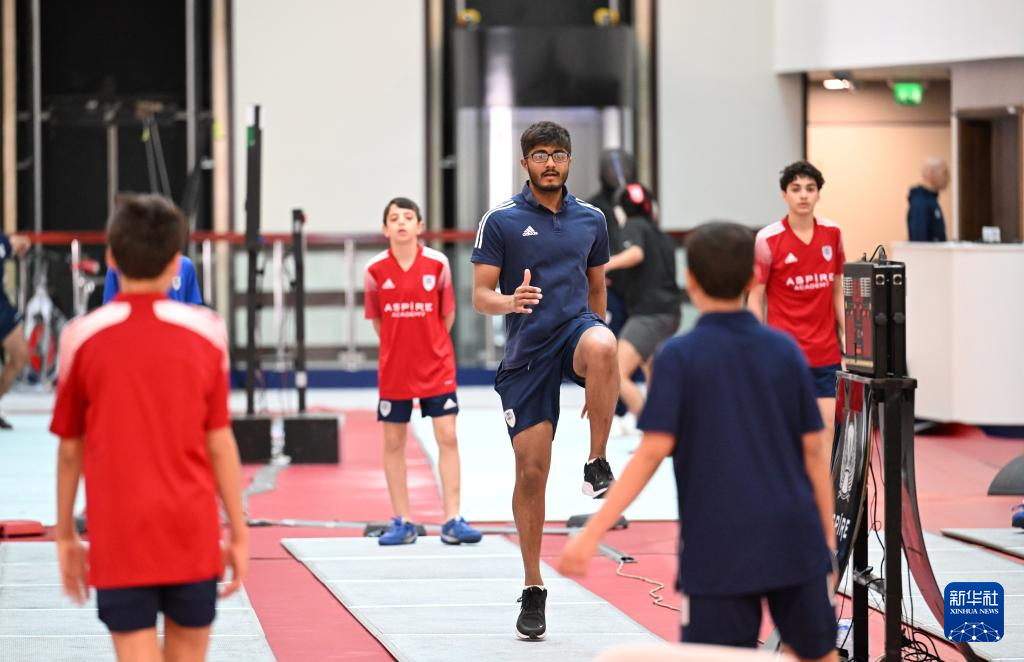 学员在教练的带领下在卡塔尔阿斯拜尔体育学院参与击剑项目训练(2月5日摄)。新华社记者 孙凡越 摄