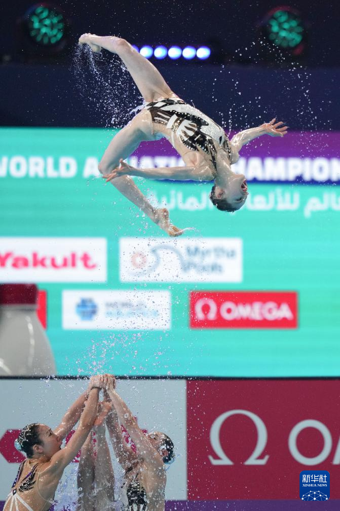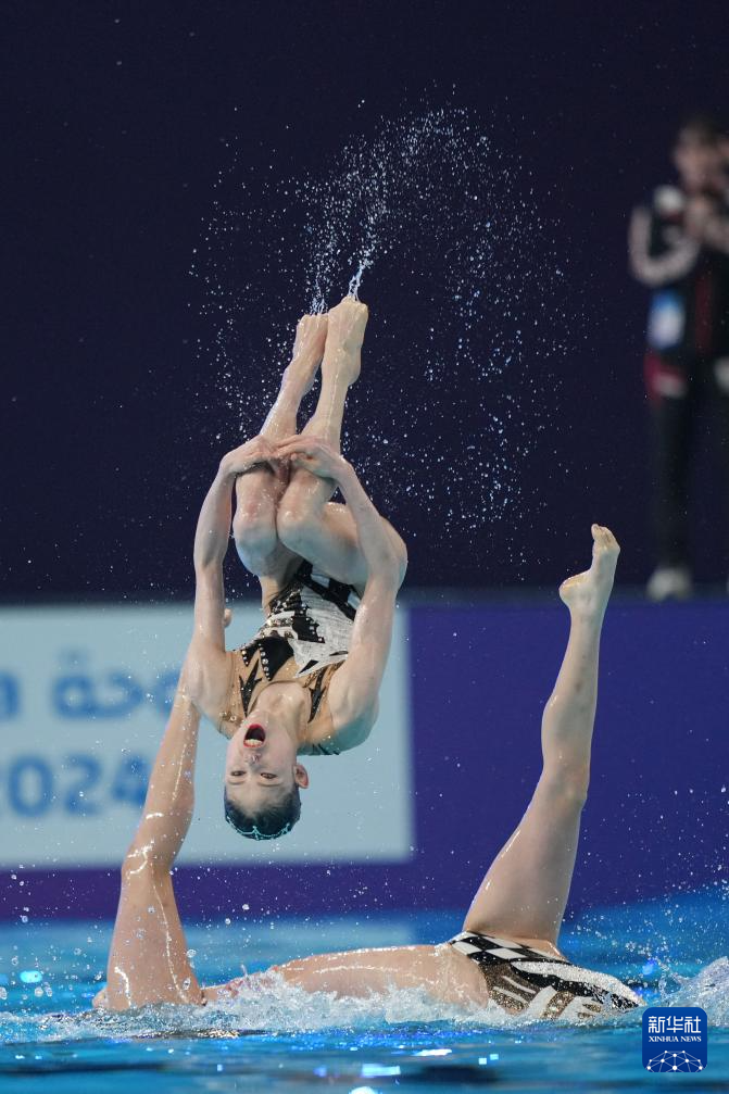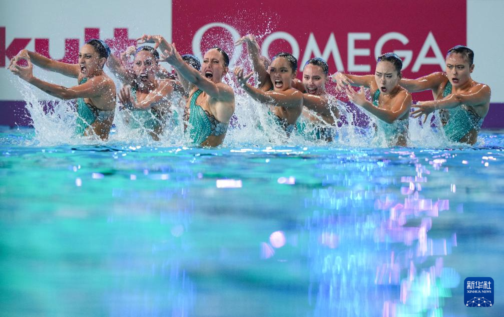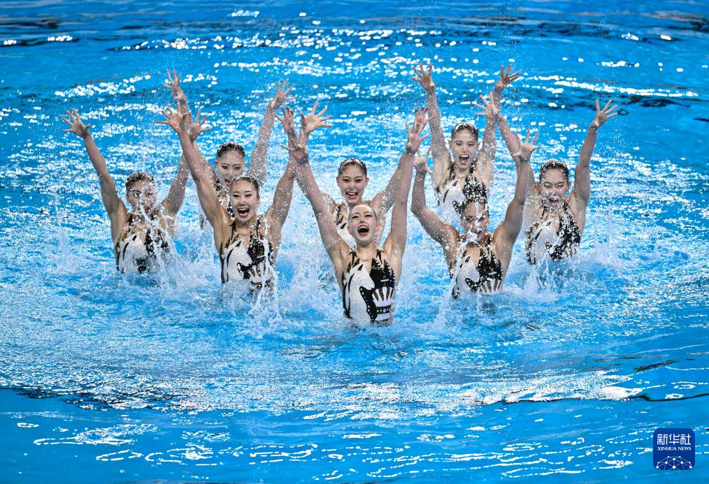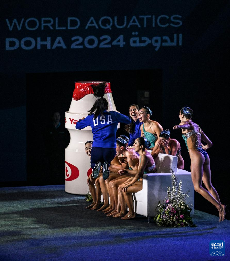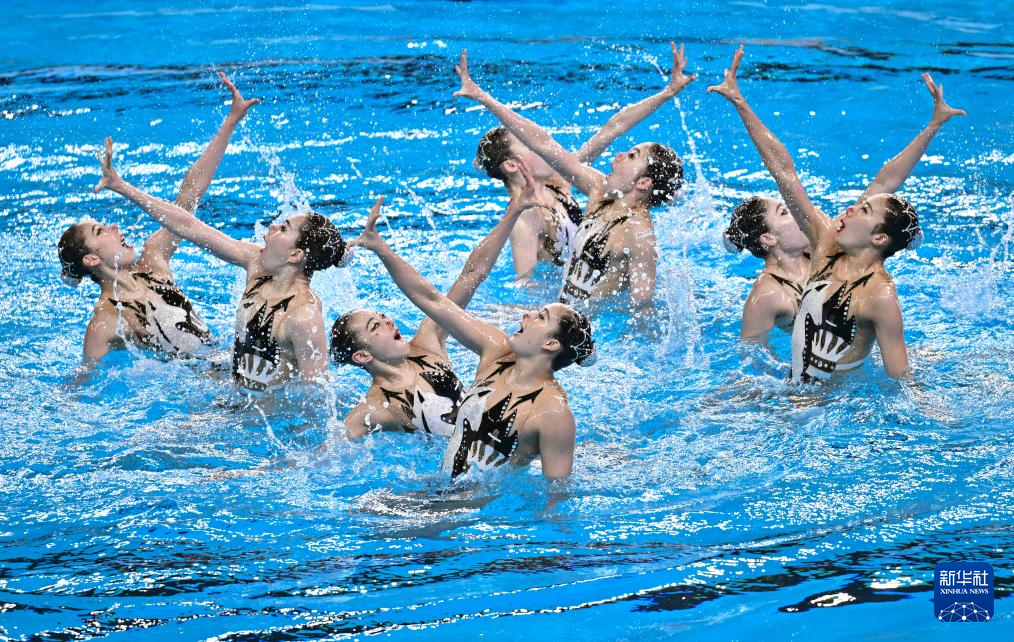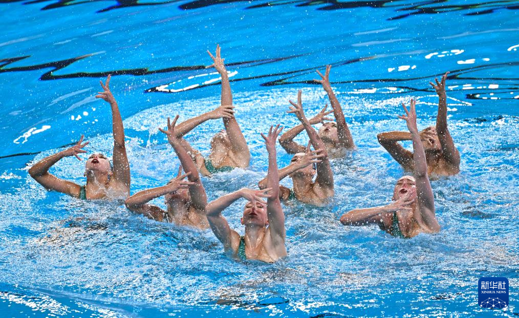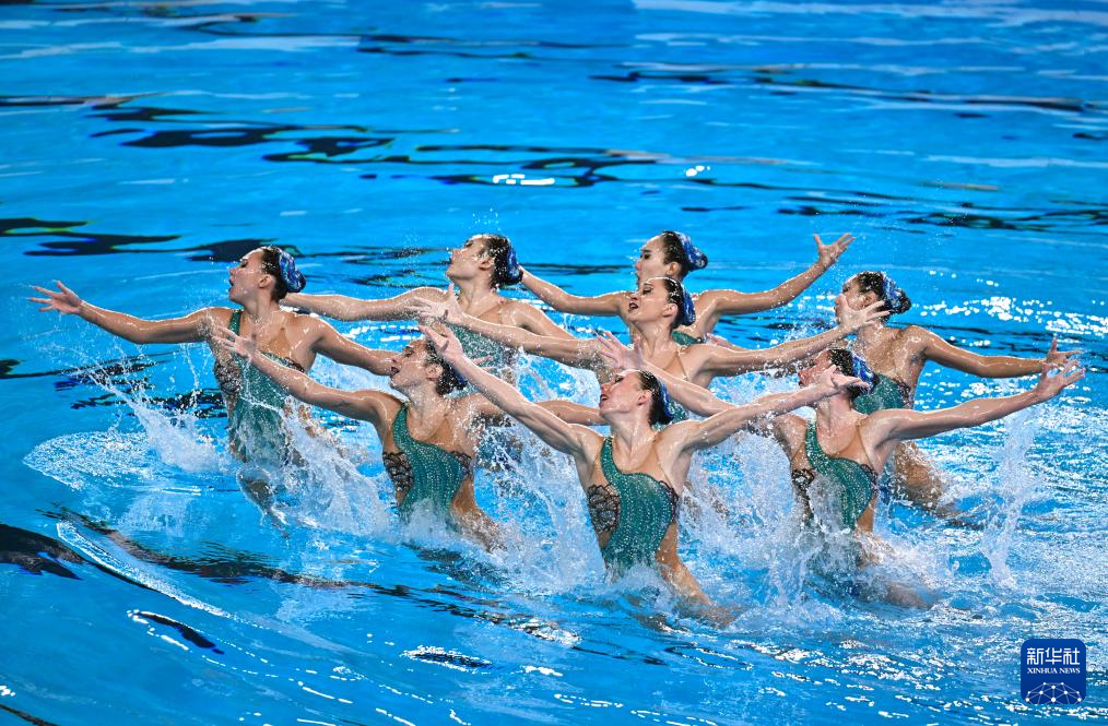当日,2024年世界游泳锦标赛花样游泳集体自由自选决赛在卡塔尔多哈举行。