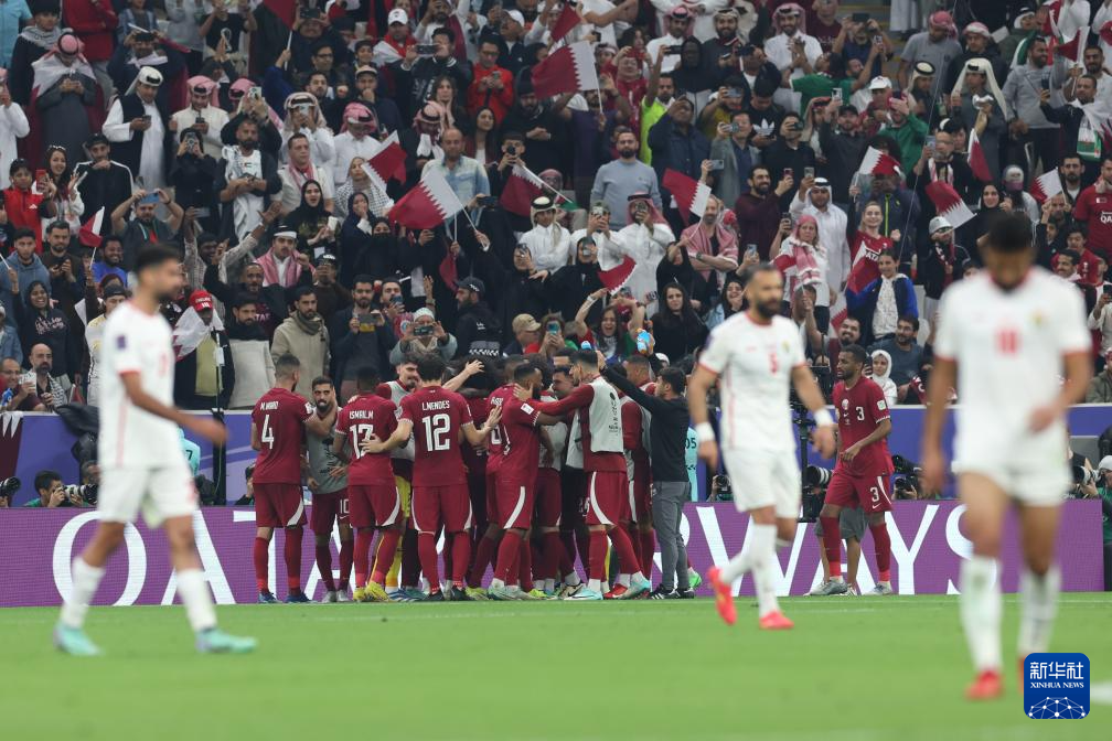 当日,在卡塔尔卢赛尔体育场举行的男足亚洲杯决赛中,卡塔尔队3比1战胜约旦队,夺得冠军。