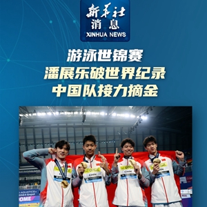 新华社消息丨游泳世锦赛:潘展乐破世界纪录 中国队接力摘金