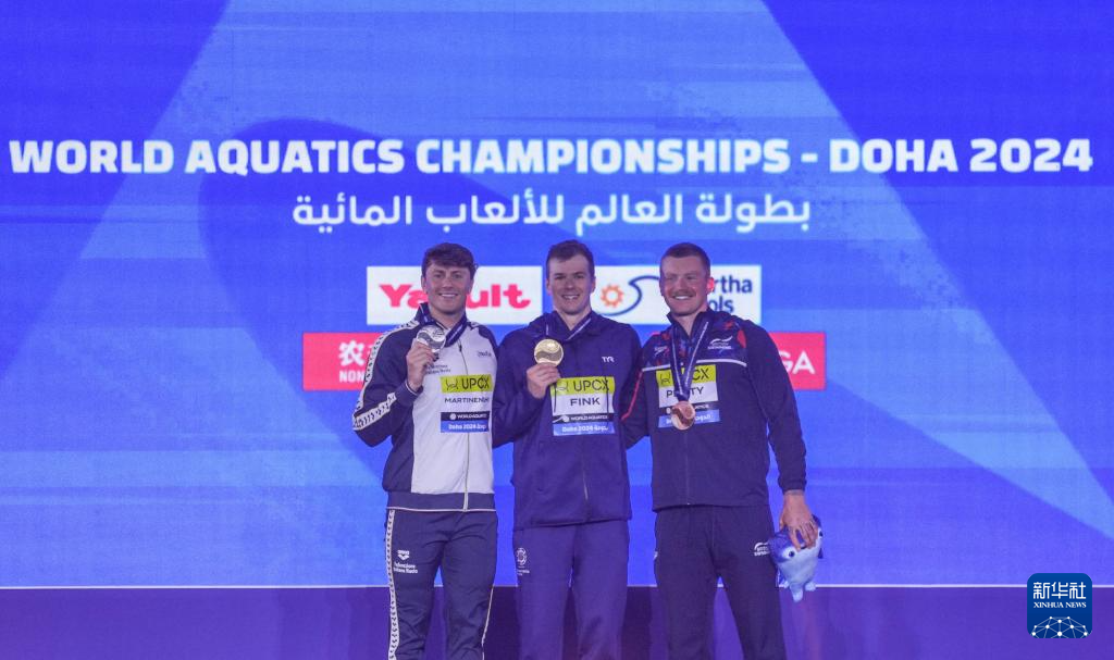 当日,在卡塔尔多哈举行的2024年世界游泳锦标赛游泳项目男子100米蛙泳决赛中,美国选手尼克·芬克以58秒57的成绩夺冠,意大利选手马丁嫩吉获得亚军,英国选手皮蒂获得季军。