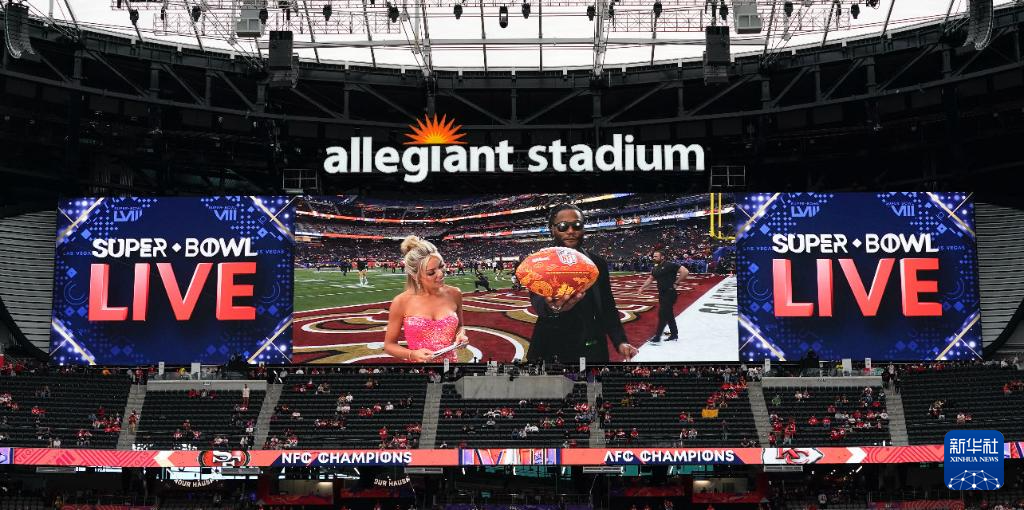 这是“龙”标限量收藏版橄榄球在“超级碗”总决赛看台展示(2月11日摄)。新华社发