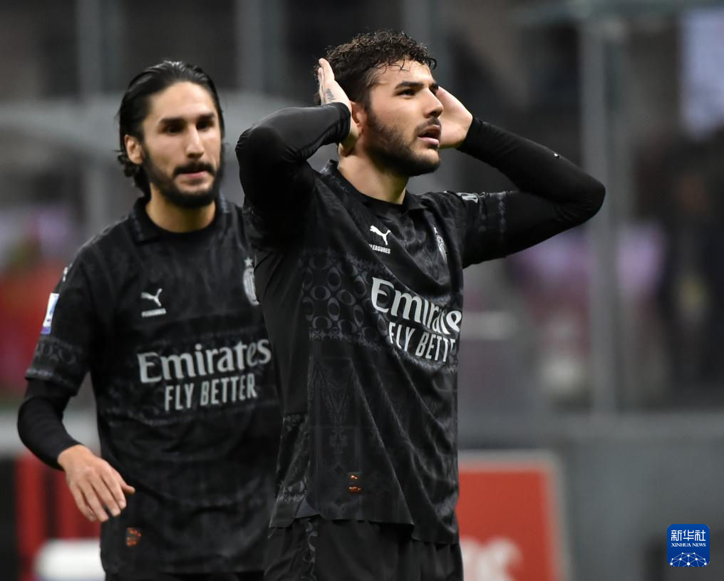 2月11日,AC米兰队球员特奥·埃尔南德斯(右)庆祝进球。新华社发(阿尔贝托·林格利亚摄)