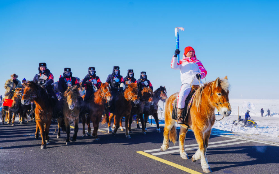 2月3日,“十四冬”火炬传递活动在内蒙古呼伦贝尔市举行。新华社发(西日呼摄)