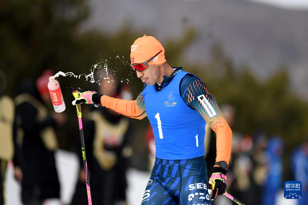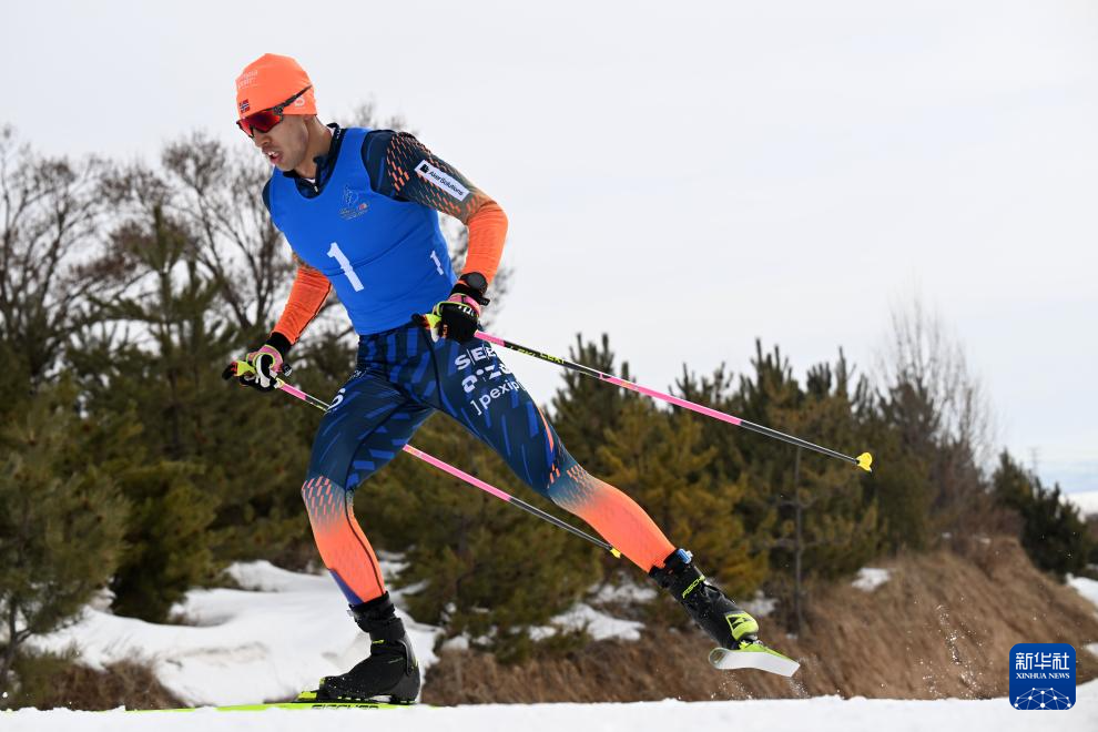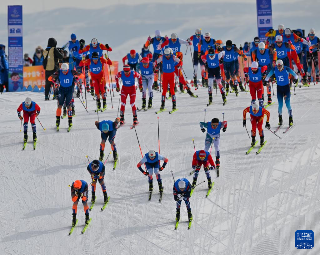 当日,第十四届全国冬季运动会越野滑雪公开组男子双追逐(15公里传统技术+15公里自由技术)比赛在内蒙古乌兰察布市凉城滑雪场举行。
