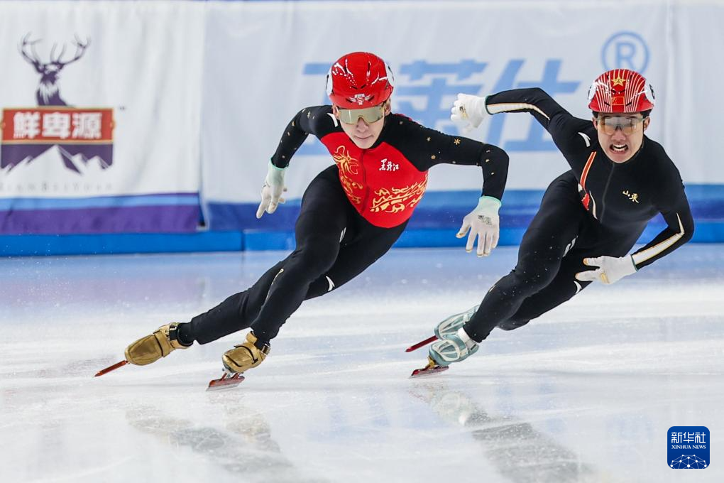 2月16日,山东队选手李文龙(右)在比赛中。新华社记者 李博 摄