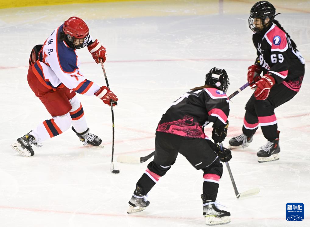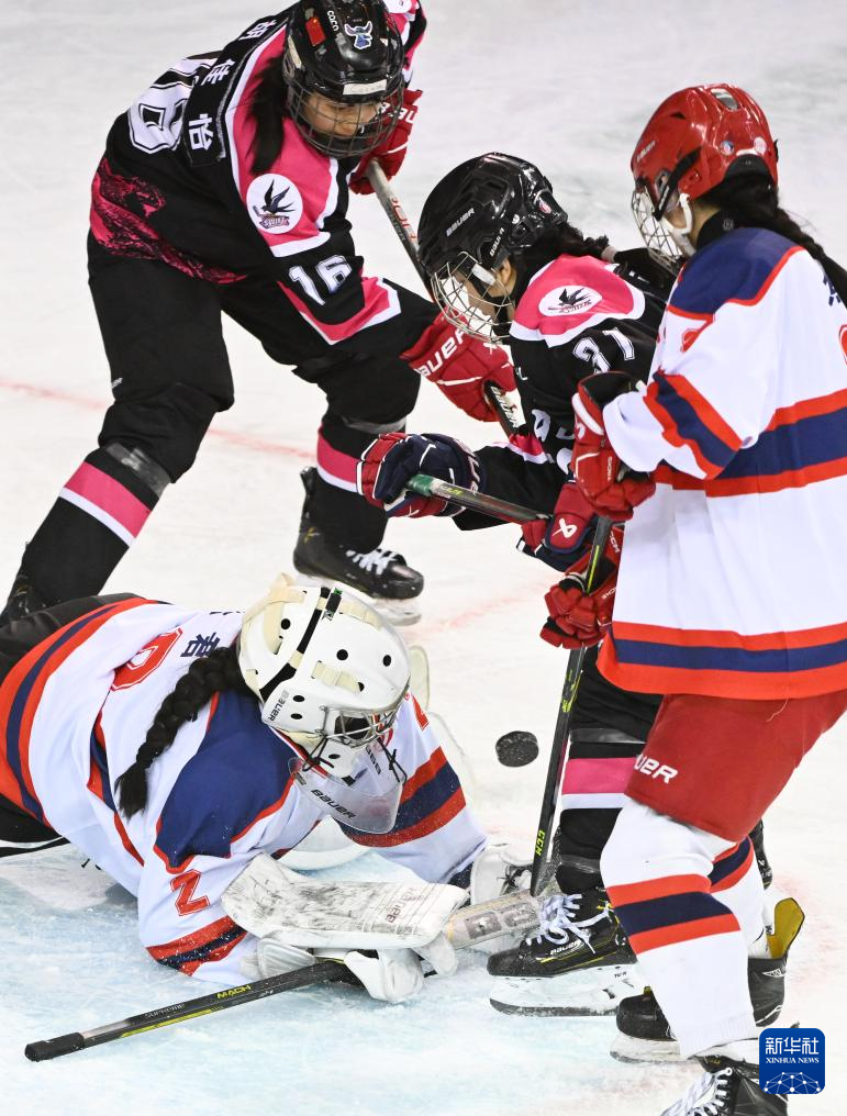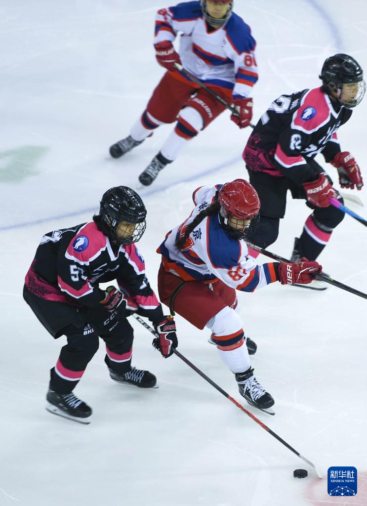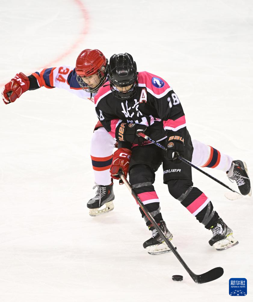 当日,在内蒙古冰上运动训练中心冰球馆举行的第十四届全国冬季运动会冰球项目女子青年组小组循环赛A组比赛中,北京队8比2战胜河北队。