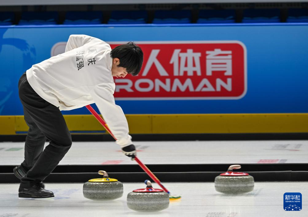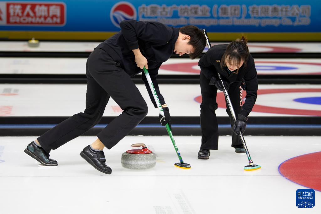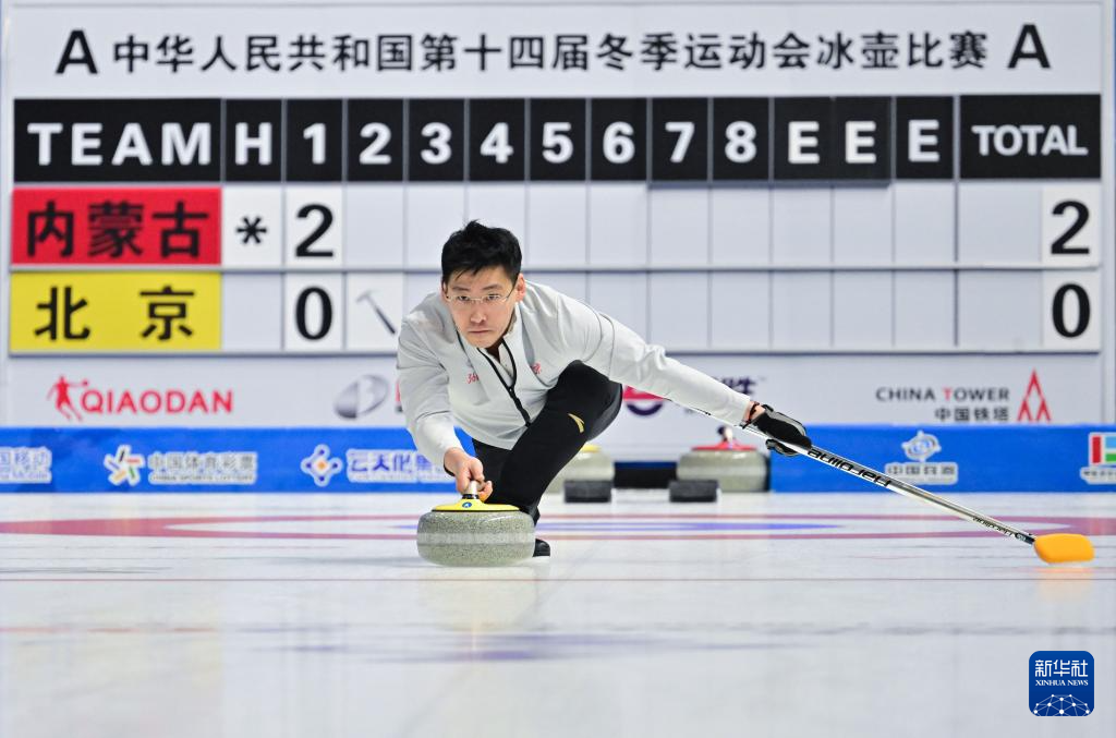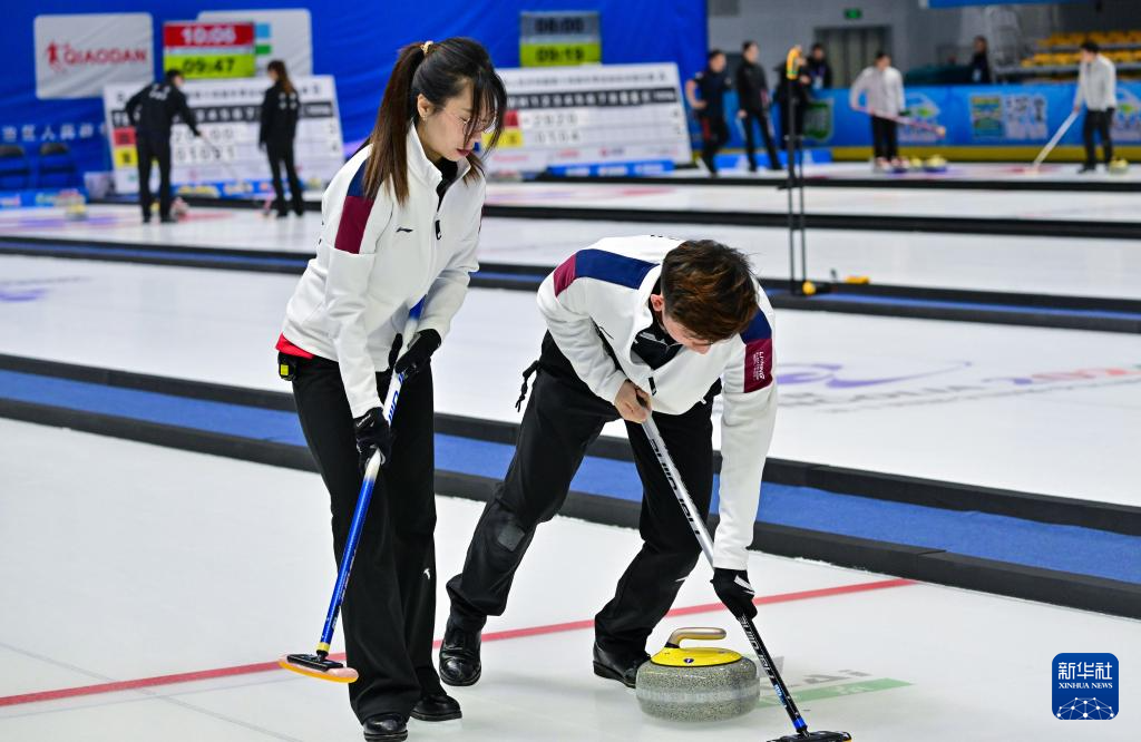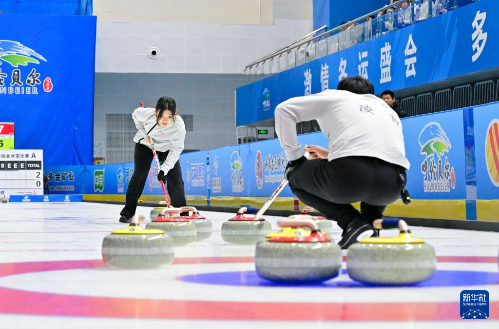 当日,第十四届全国冬季运动会冰壶项目公开组混合双人循环赛第四轮比赛在呼伦贝尔市内蒙古冰上运动训练中心举行。