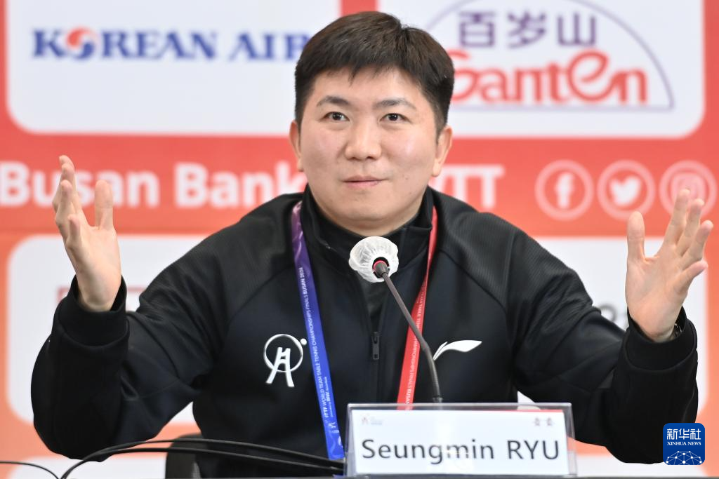 2月15日,釜山世乒赛团体赛组委会联合主席柳承敏在新闻发布会上发言。