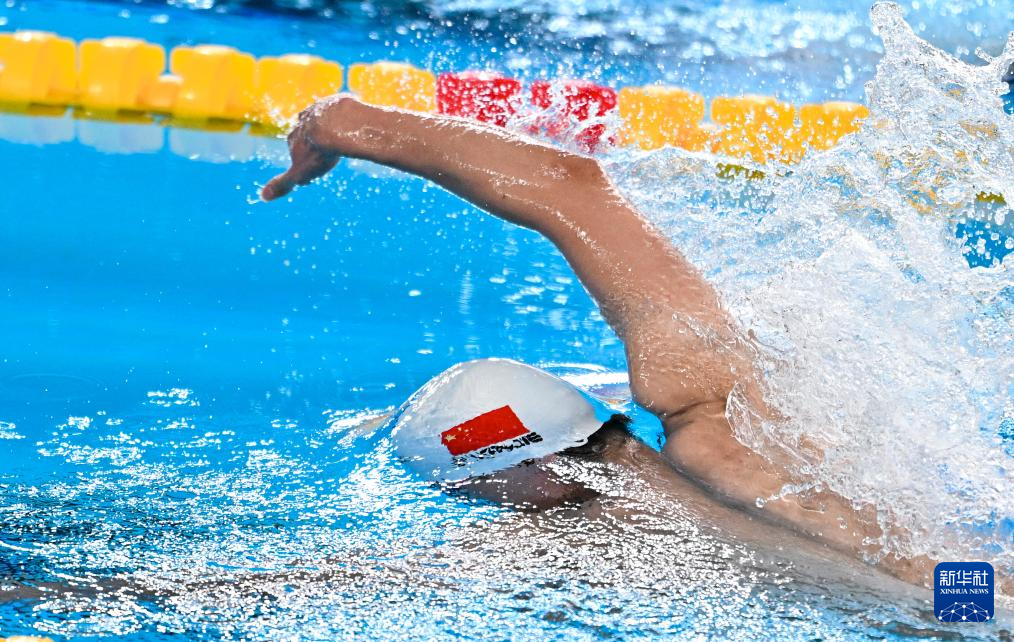 2月16日,中国队选手潘展乐在比赛中。新华社记者 夏一方 摄