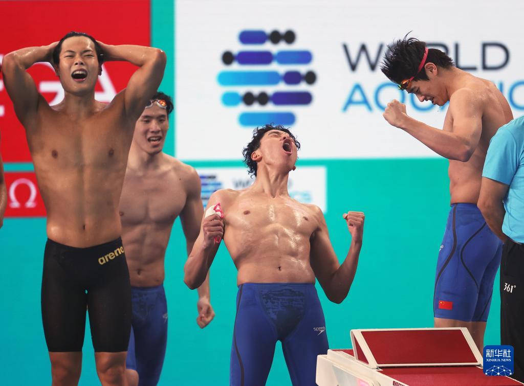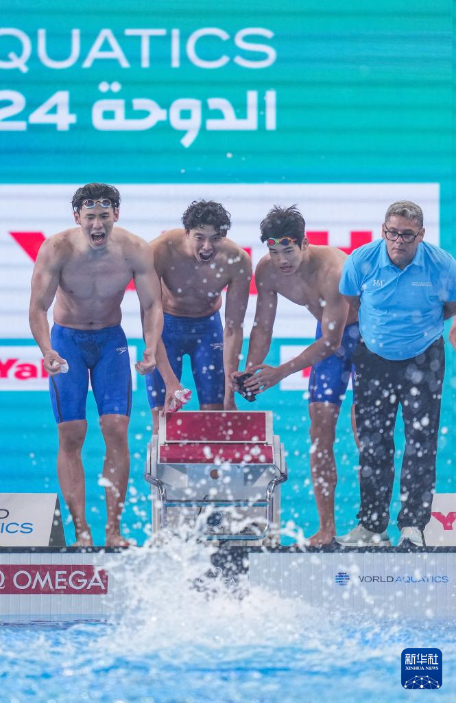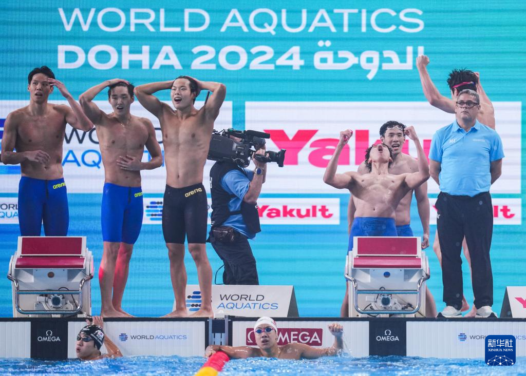 当日,在卡塔尔多哈举行的2024年世界游泳锦标赛游泳项目男子4X200米自由泳接力决赛中,由季新杰、王浩宇、潘展乐、张展硕组成的中国队以7分1秒84的成绩夺得金牌。