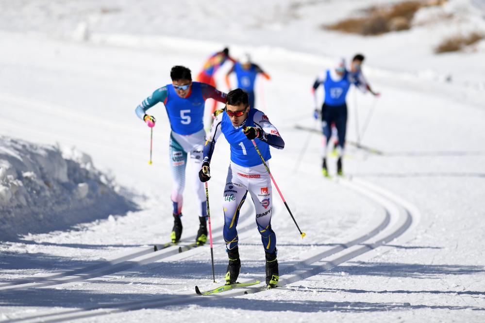 2月17日,重庆队选手王强(前)在比赛中,他以3分10秒01的成绩获得冠军。新华社记者 黄博涵 摄