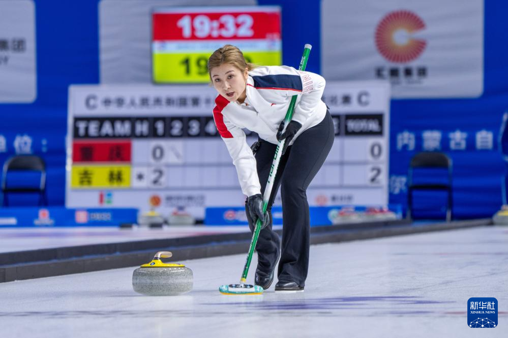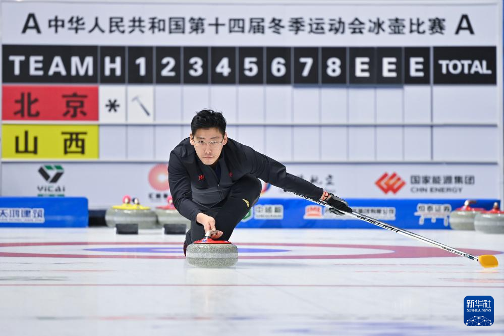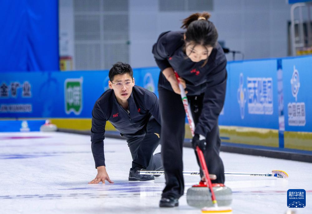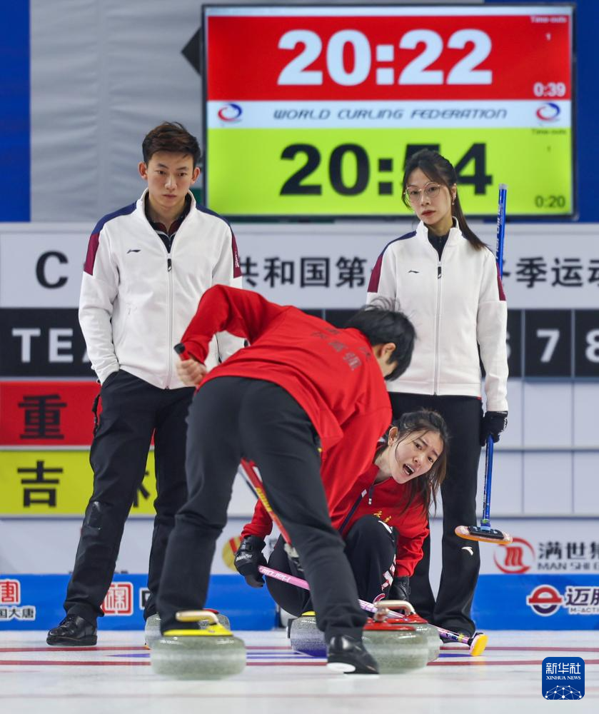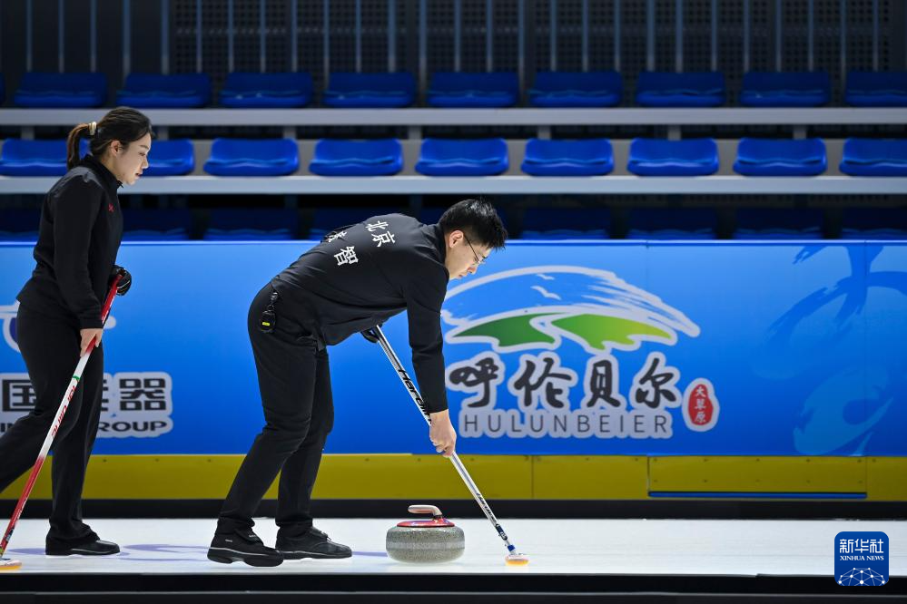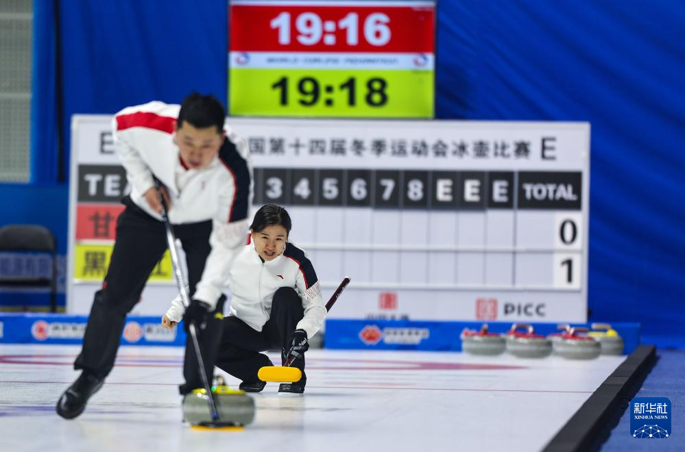 当日,第十四届全国冬季运动会冰壶项目公开组混合双人循环赛第六轮比赛在呼伦贝尔市内蒙古冰上运动训练中心举行。