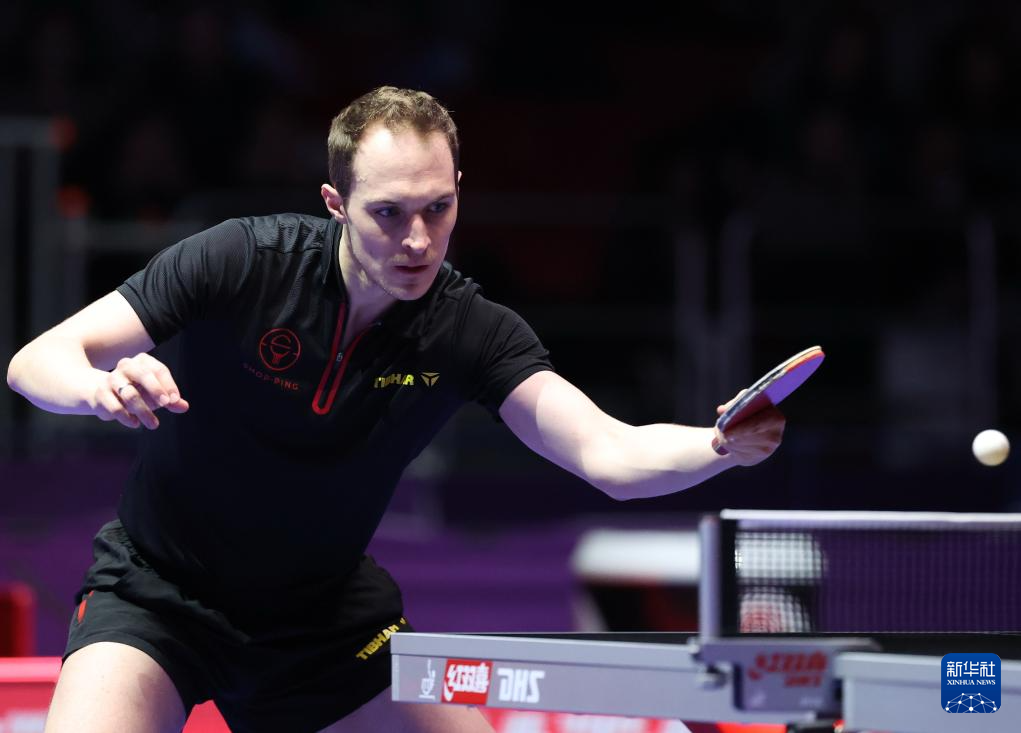2月16日,比利时选手塞德里克·努伊提克在第一盘比赛中回球。最终,他0比3不敌中国队选手樊振东。新华社记者 杨世尧 摄
