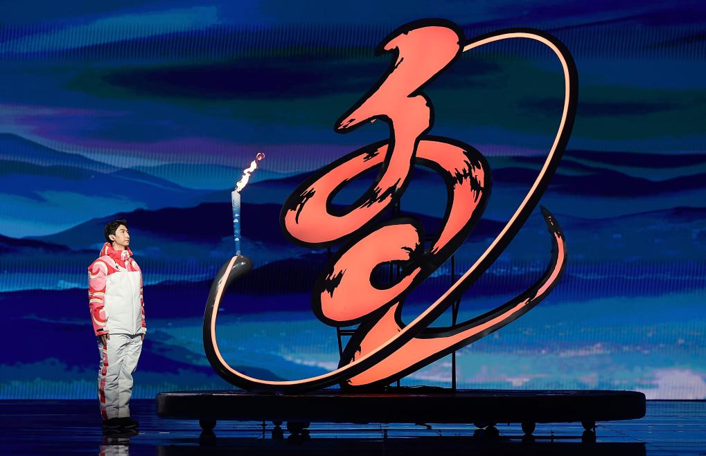 2月17日,第十四届全国冬季运动会主火炬塔在开幕式上被点燃。新华社记者 连振 摄