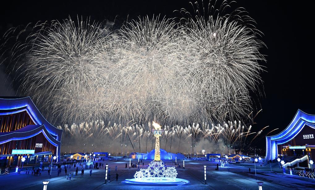这一刻,“十四冬”圣火在北疆点燃,梦想之花在冰雪上绽放。