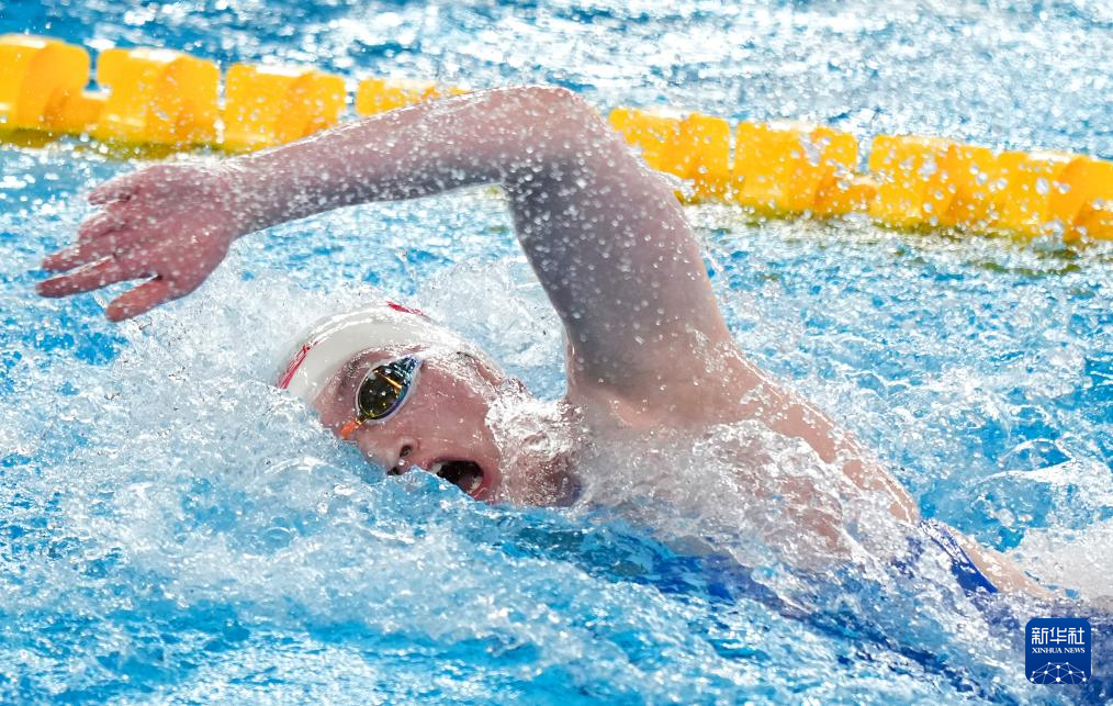 2月17日,中国队第一棒潘展乐在决赛中。新华社记者 夏一方 摄