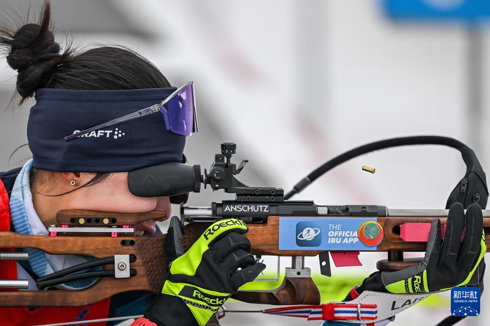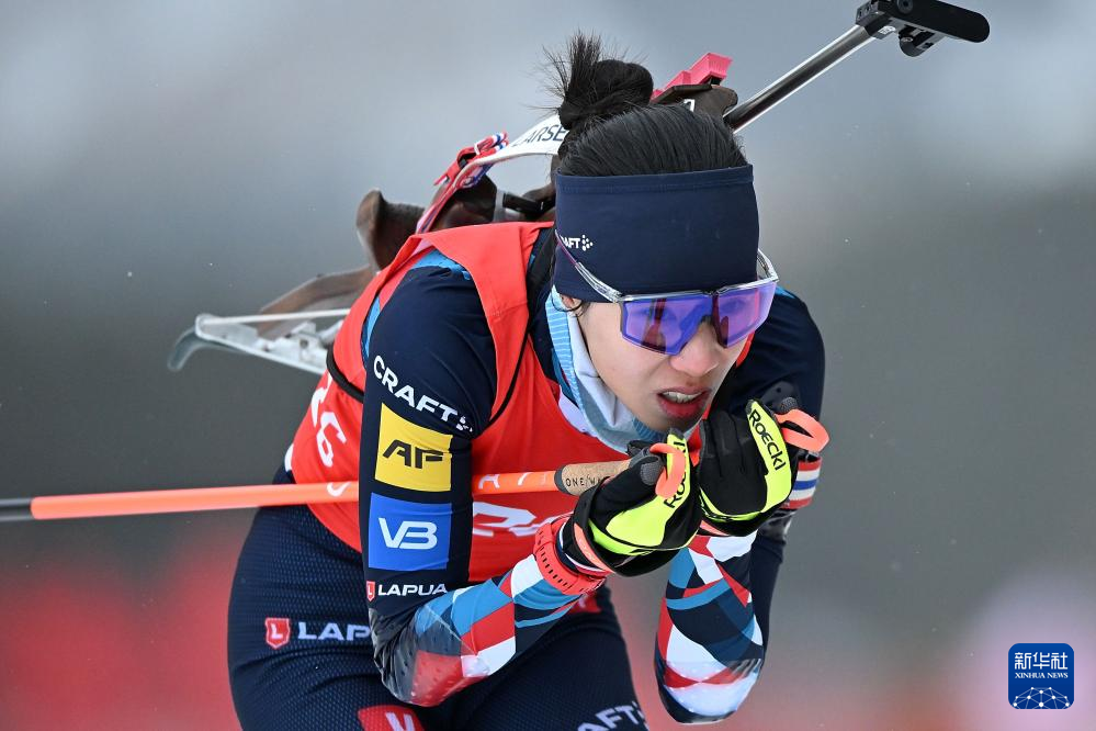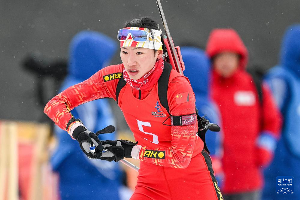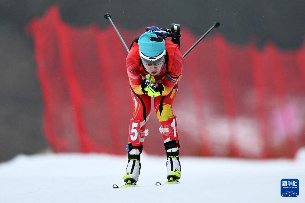 2月18日,吉林队选手孟繁棋在比赛中。她以52分55秒8的成绩夺得冠军。新华社记者 伍志尊 摄