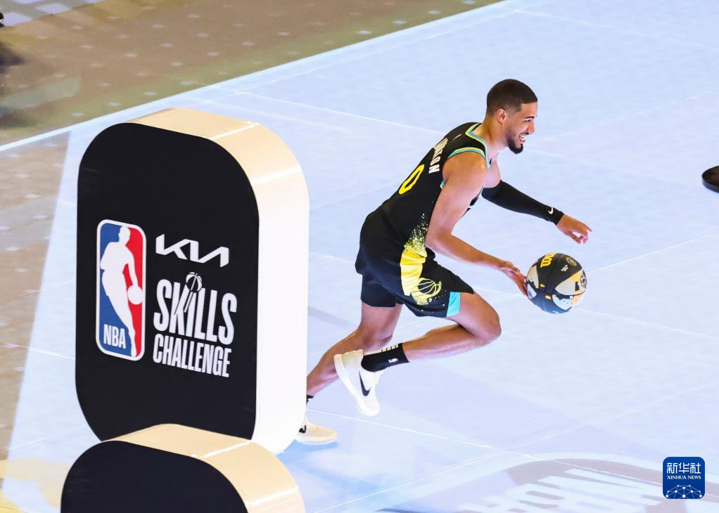 2月17日,步行者队球员哈利伯顿在全明星技巧挑战赛中运球。新华社发(乔尔·莱纳摄)