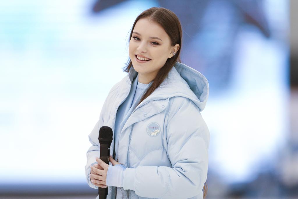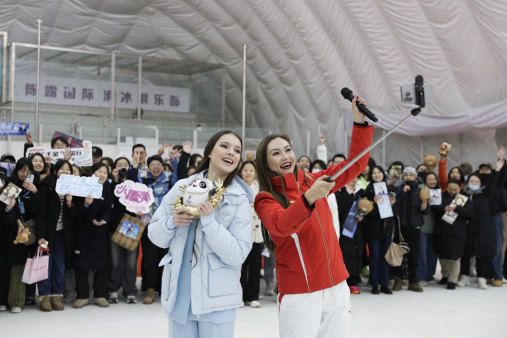 2月17日,谢尔巴科娃在陈露国际冰上中心与粉丝见面。新华社记者 许雅楠 摄