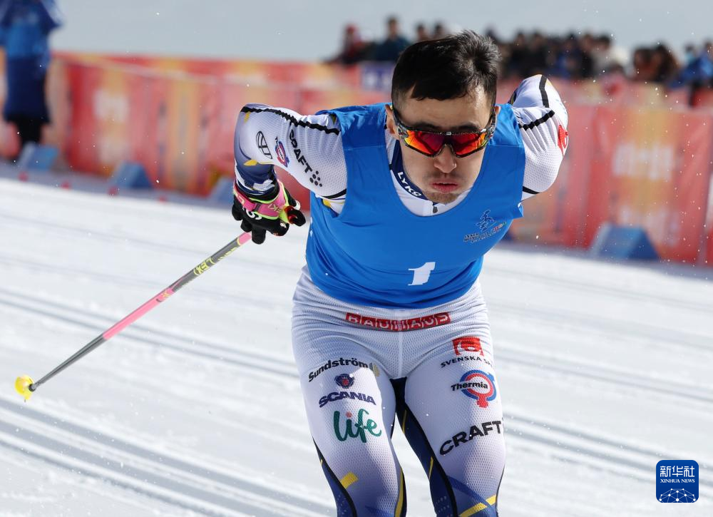 2月17日,重庆队选手王强在比赛中,他以3分10秒01的成绩获得冠军。新华社记者 赵子硕 摄