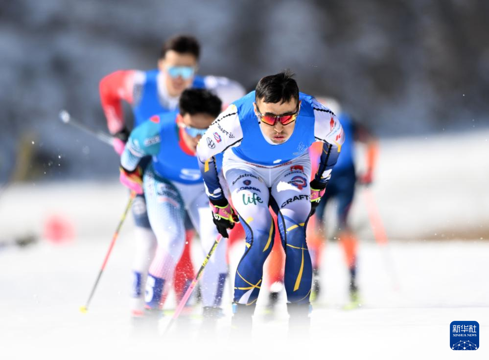 2月17日,重庆队选手吾尔开西·库尔班江(左)在比赛中,他以3分13秒83的成绩获得季军。新华社记者 张晨霖 摄