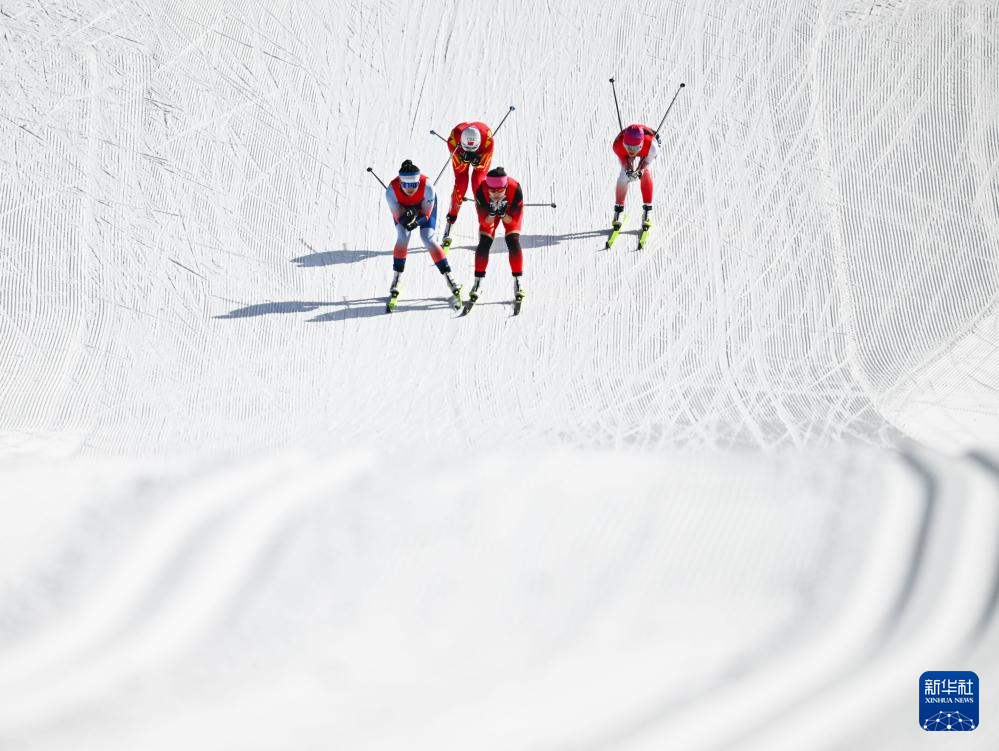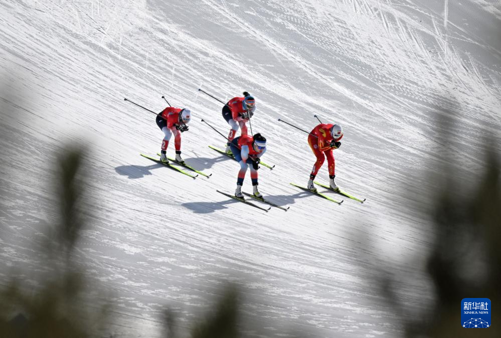 2月17日,吉林队选手李磊(右一)在比赛中,她以3分42秒26的成绩获得冠军。新华社记者 赵子硕 摄
