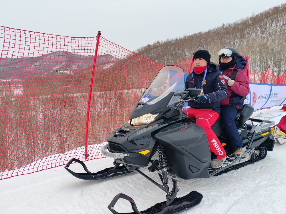 医疗组成员乘坐雪上摩托开展救助。新华社记者 张武岳 摄