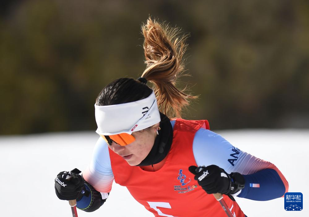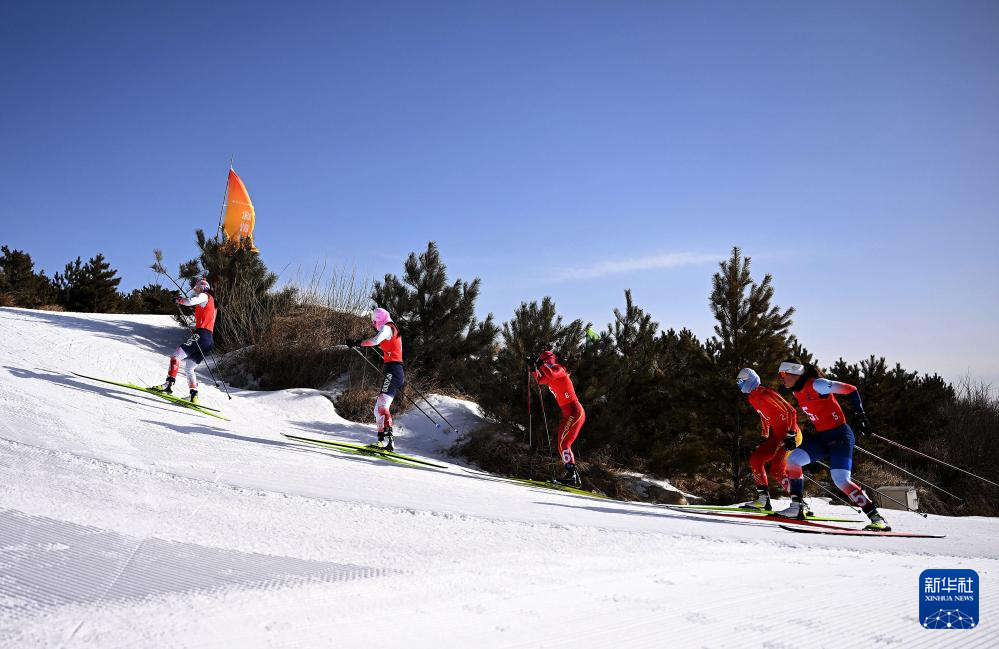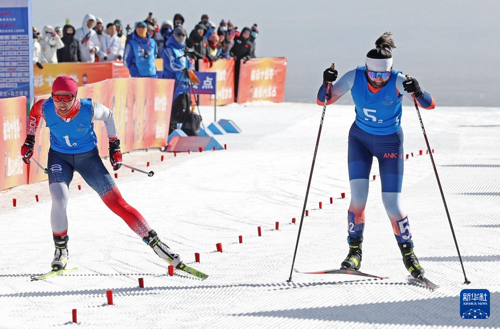 2月19日,新疆队选手迪妮格尔·衣拉木江(右)与黑龙江队选手李馨在比赛中冲刺。新华社记者 张晨霖 摄