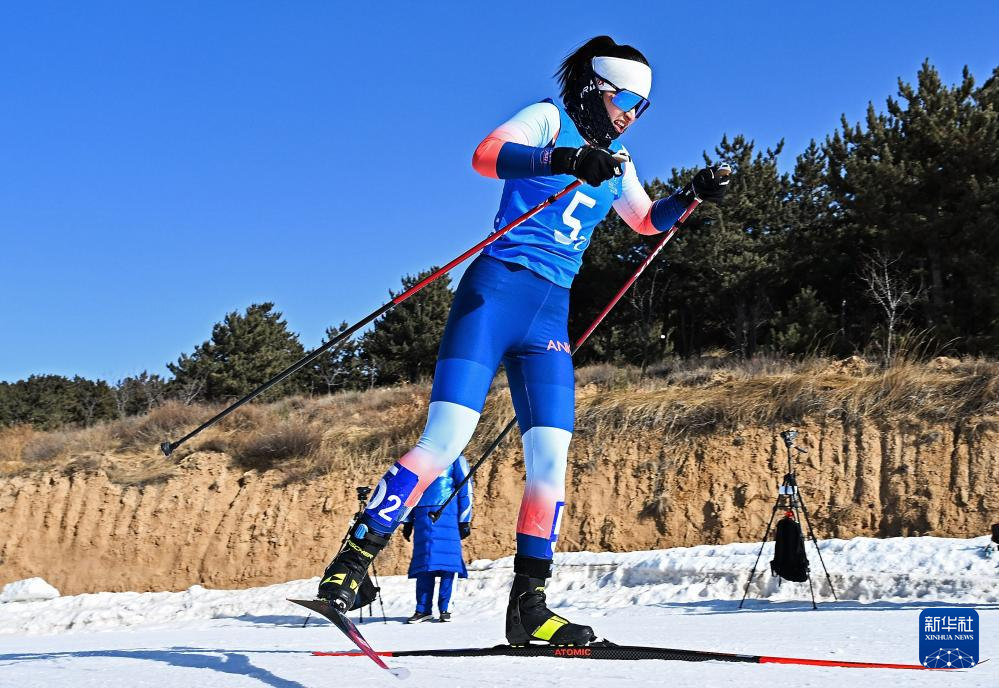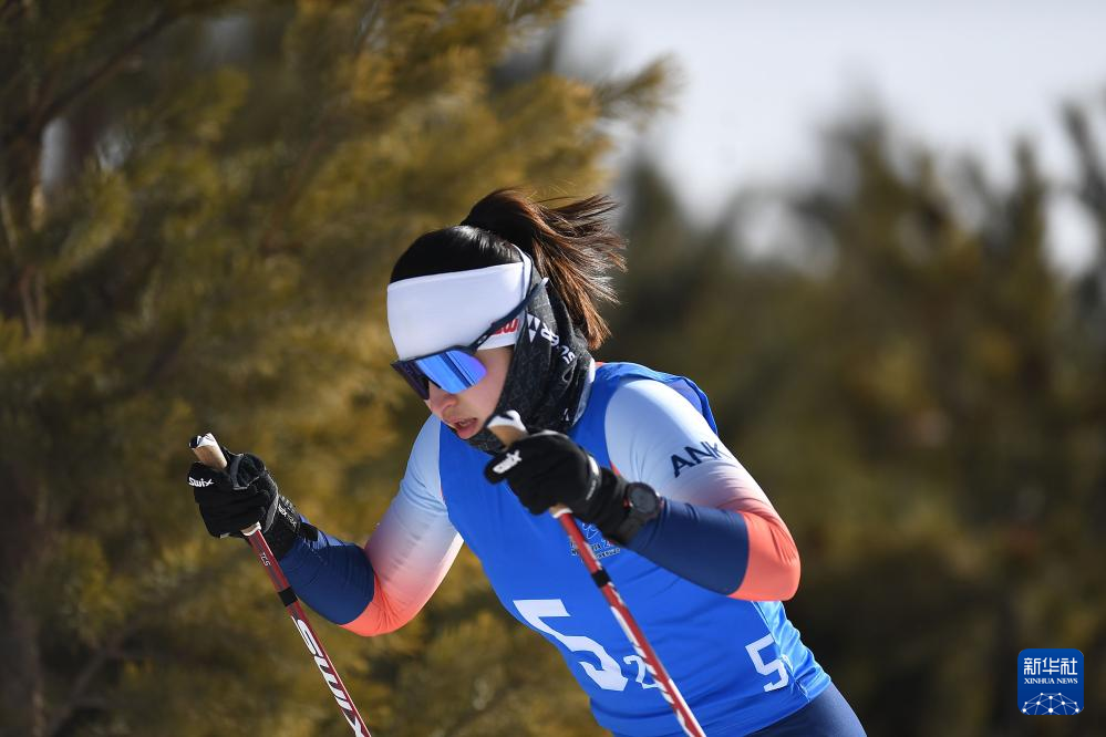 2月19日,新疆队选手迪妮格尔·衣拉木江在比赛中。新华社记者 刘磊 摄