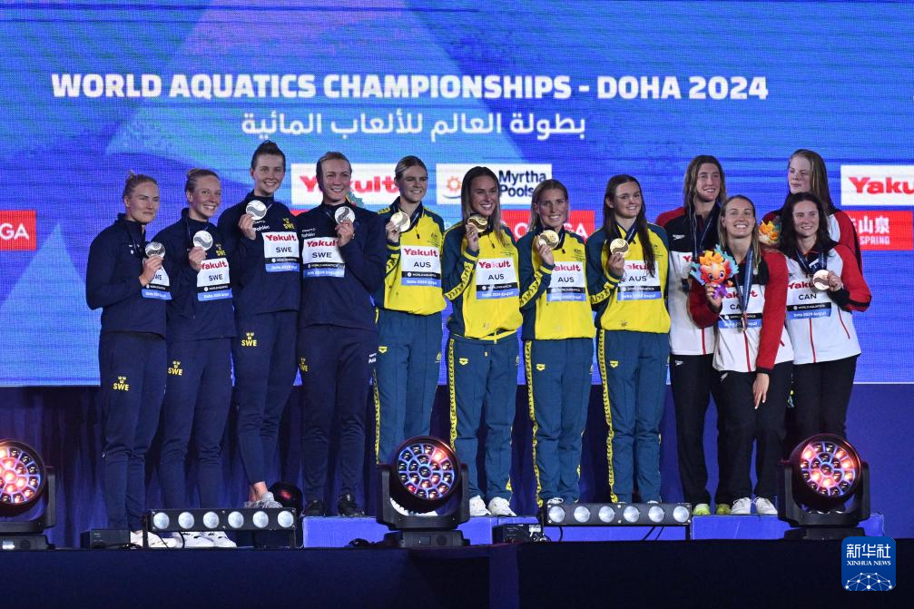 当日,2024年世界游泳锦标赛游泳项目女子4X100米混合泳接力决赛在卡塔尔多哈举行。
