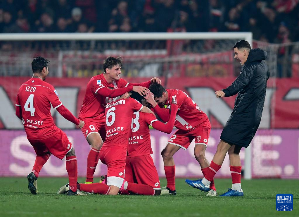 2月18日,蒙扎队球员庆祝进球。新华社发(奥古斯托·卡萨索利摄)