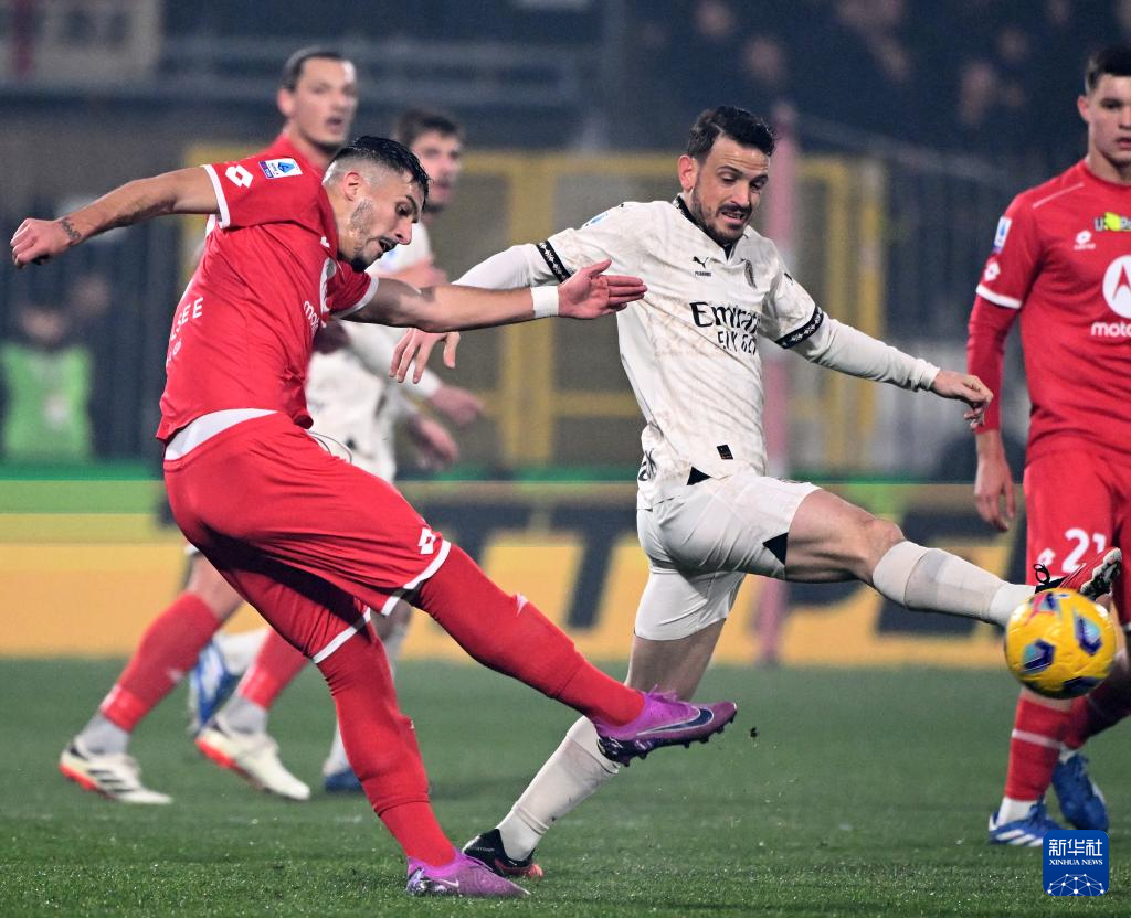2月18日,蒙扎队球员科隆博在比赛中射门得分。新华社发(奥古斯托·卡萨索利摄)