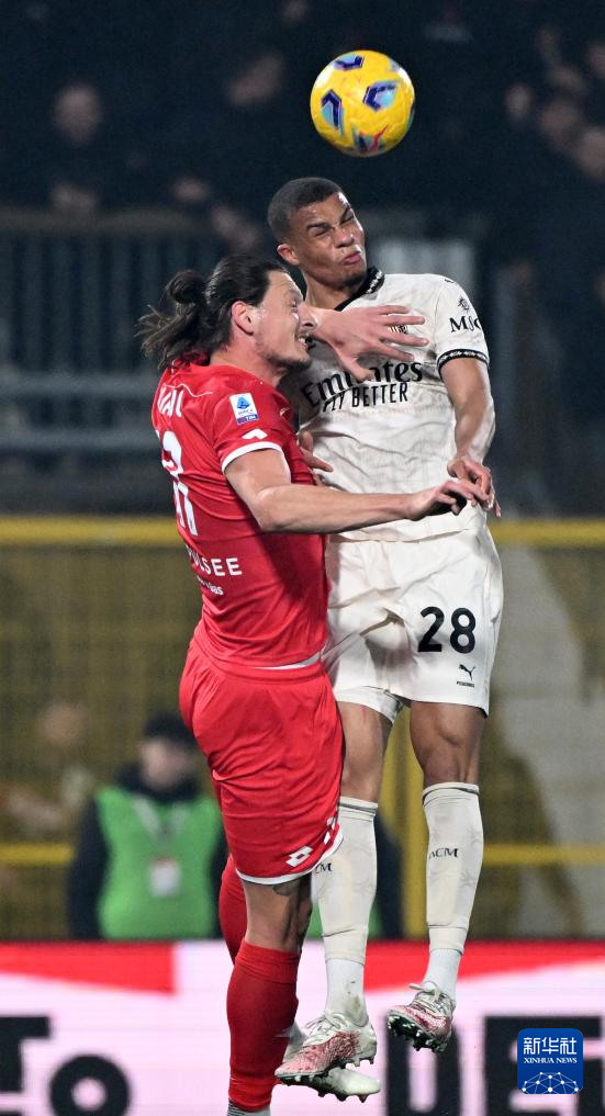 2月18日,蒙扎队球员久里奇(左)与AC米兰队球员马利克·佳夫在比赛中争顶。新华社发(奥古斯托·卡萨索利摄)
