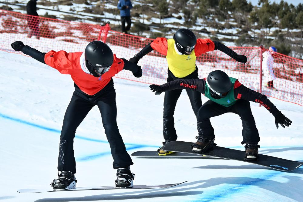 2月19日,吉林队选手孟祥威、辽宁队选手李璎霏和云南队选手潘鸣(从左至右)在比赛中。新华社记者 陈振海 摄