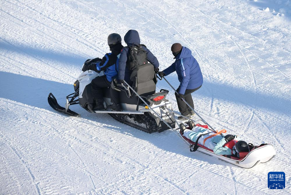 2月19日,吉林队选手马卓妮(右)受伤后被工作人员送出场外。新华社记者 贝赫 摄